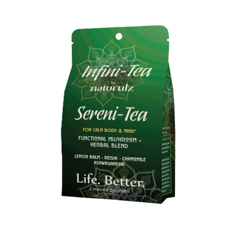 With Sereni-Tea, you’ll experience the calming effects of Reishi Mushroom blended with herbs that support your gut health and reduce stress. As you sip, feel the soothing relief from indigestion and digestive discomfort, while the natural stress-relieving properties of Reishi Mushroom calm your mind. This thoughtfully crafted tea works in harmony to improve your overall well-being, leaving you feeling balanced, relaxed and at ease—perfect for finding calm in both body and mind.