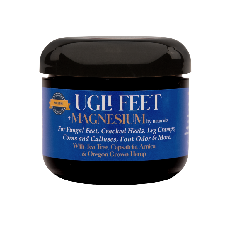 With a powerful blend of Magnesium, Oregon-grown Hemp and 13 healing botanical ingredients, Ugli Feet + Magnesium naturally eases soreness, calms overactive and restless muscles & soothes dry, cracked skin while relieving itchiness & redness and providing deep, lasting hydration.